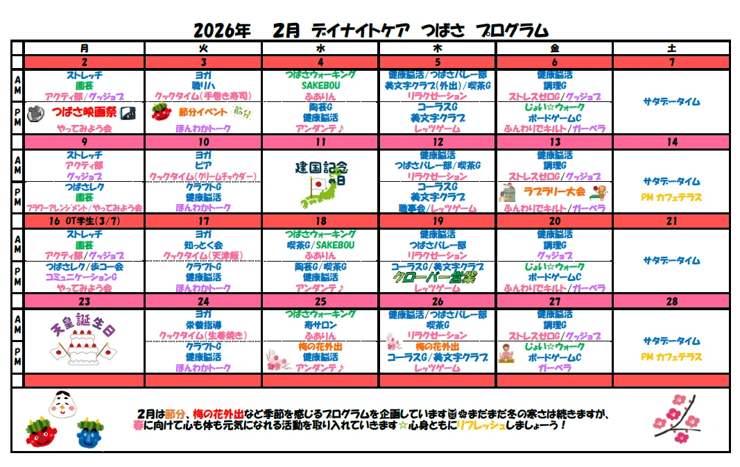 2月は節分、観梅会などありますので、こうご期待。